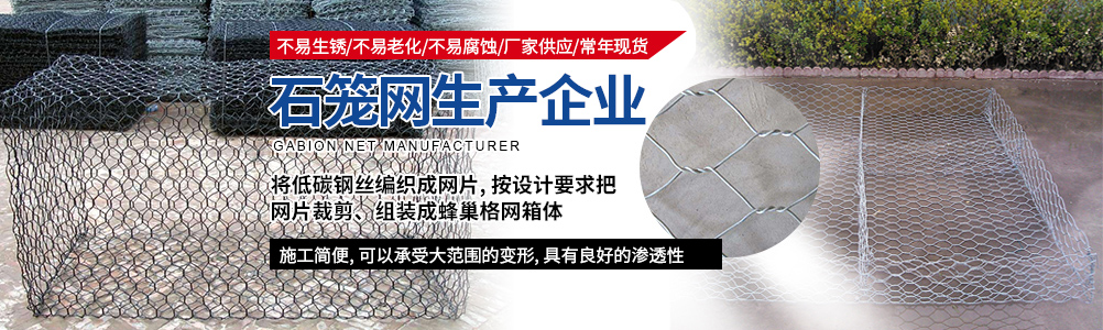 本公司主要生產:石籠網格賓網、重型六角網、鍍高爾凡格賓擋墻、雷諾護墊綠濱墊、固濱籠、耐特籠、鉛絲石籠、格賓石籠、電焊石籠網、鍍鋅石籠網、河道石籠網、包塑石籠網、勾花網、高爾凡石籠網、三擰石籠網、五擰石籠網等,可用于保護和支持河道、海堤、山坡、路橋、水庫及其他土木工程, 是防洪固堤工程的上好材料。以可靠的質量,滿意的售后服務深受新老客戶的好評。